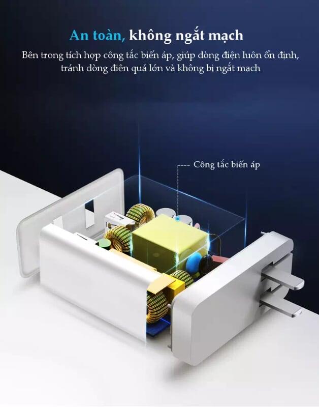 Cục Sạc Nhanh 20W 4 Cổng Sạc PD Type C Quick Charge 3.0 18W, Có Đèn Led Phát Sáng, Sạc 4 Máy