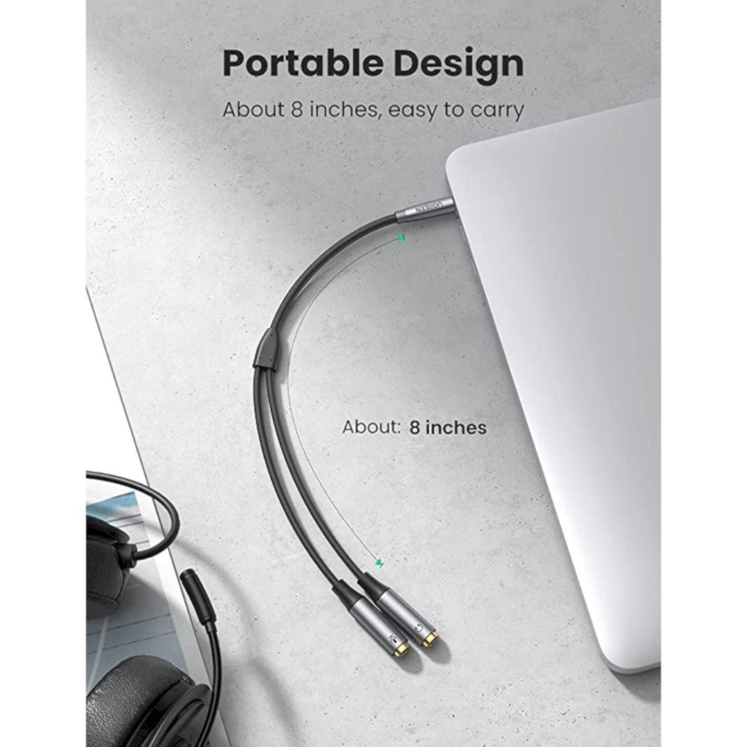 Ugreen 10532 3.5Mm Male To 3.5Mm Female ×2 Metal Connectors Gold Plated 20Cm AV123 1. Features: split 3.5 audio port from 1 to 2 ports 2. Cable length: 20 CM 3. Color:Black Gray 4. Input: