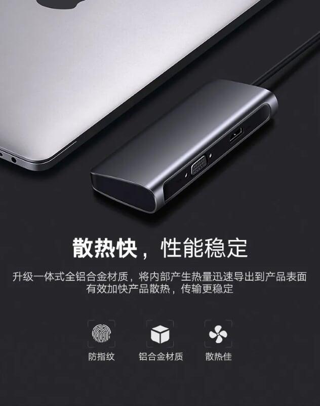 - Features: Convert positive USB-C to 1 HDMI audio, 1 VGA audio, 3 * USB 3.0 Aluminum Cover with USB-C PD Power support.