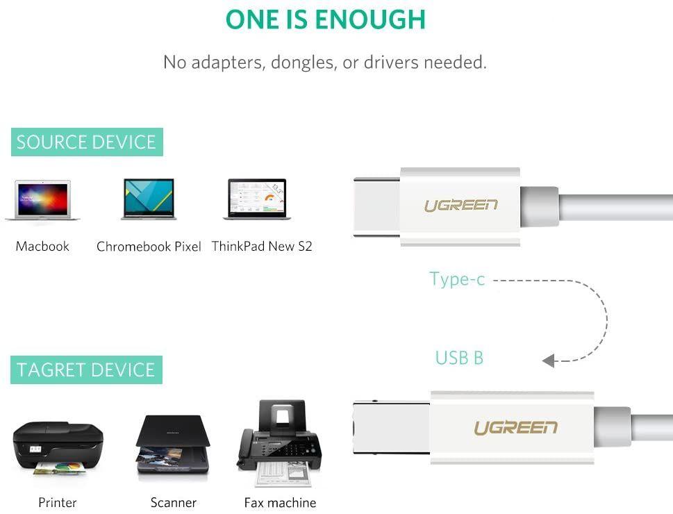 ✨Ugreen UG50446US241TK 2M màu đen cáp USB type C ra Type B 2.0 Printer Scanner - HÀNG CHÍNH HÃNG