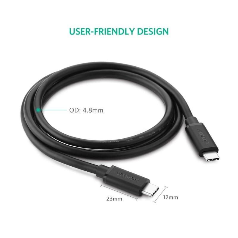 1. Hãng : Ugreen 2. Mã sản phẩm : 70427 3. Màu : Đen 4. Chiều dài cáp : 1.0 M 5. Đầu vào : USB Type C 6. Đầu ra : USB Type C