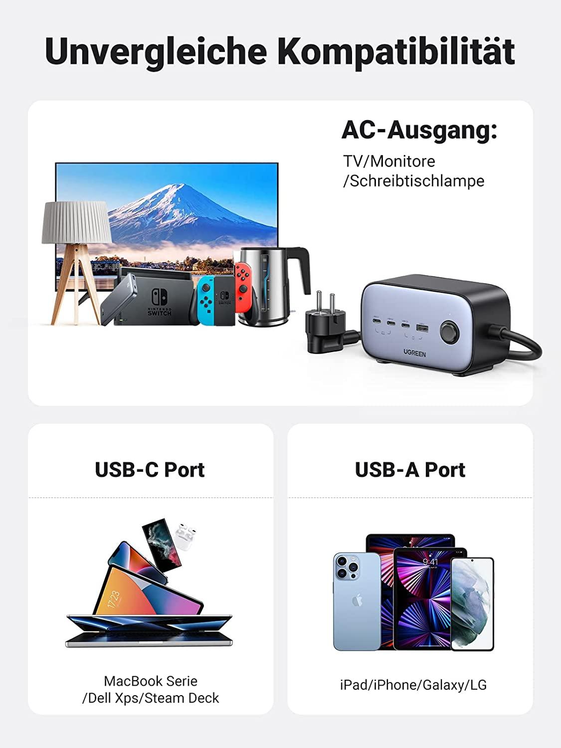 ✨Ugreen UG60167CD270TK 100W 1.8M Bộ sạc nhanh DigiNest Pro gồm 3 cổng USB-C + USB-A cáp nguồn dài 1.8M chuẩn cắm EU - HÀNG CHÍNH HÃNG