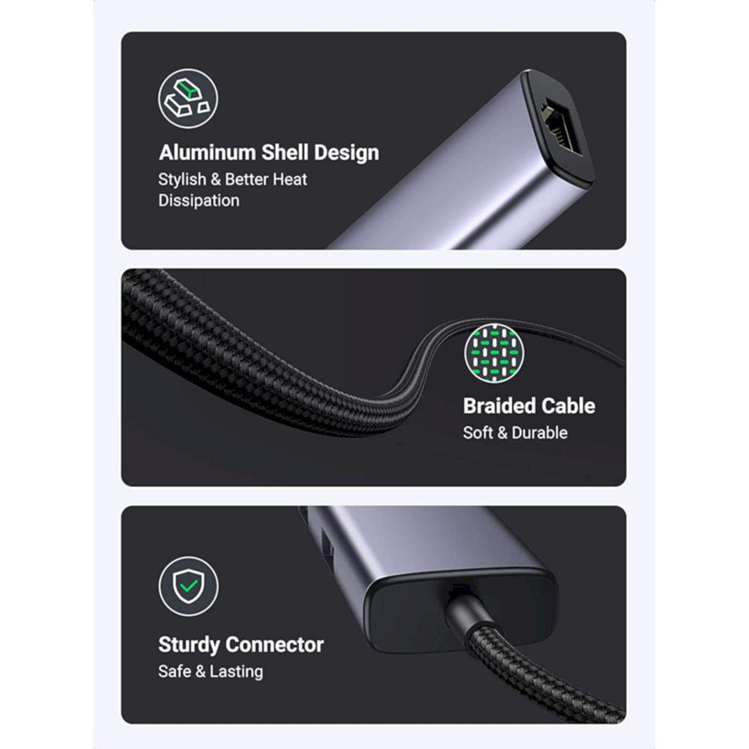Bộ chuyển đổi USB 3.0 ra LAN Ugreen 20256 tốc độ 10/100/1000Mbps