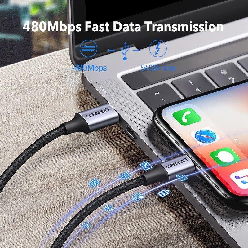 Ugreen 40987 2M MFI Lightning to USB cable cáp Aluminum Case + Braid US199 1. Function: Charging + Data transmission 2. Length: 2M 3. Color: Black 4. Compatible Brand: Apple iPhones Lightning 8 Pin Devices
