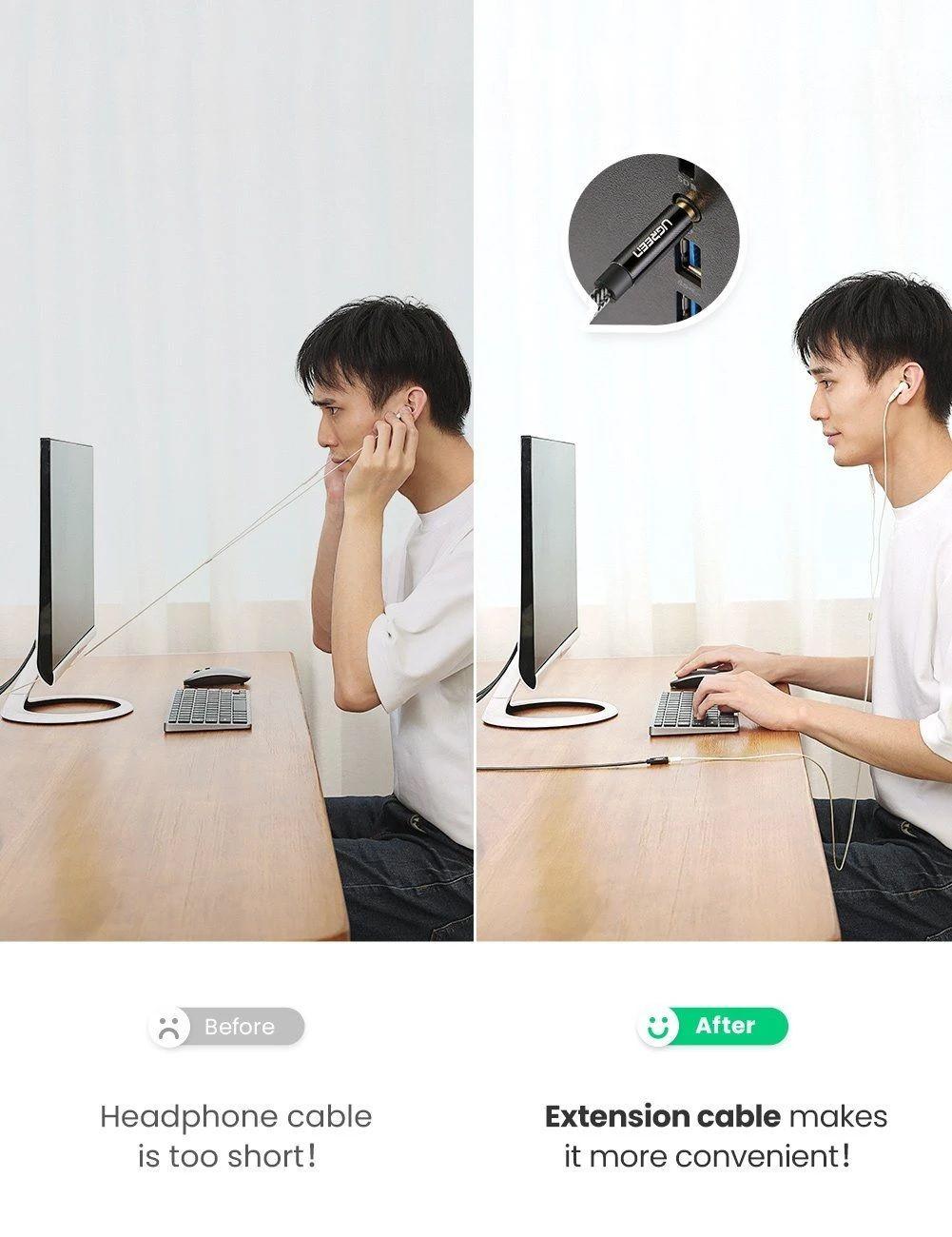 Ugreen 10532 3.5Mm Male To 3.5Mm Female ×2 Metal Connectors Gold Plated 20Cm AV123 1. Features: split 3.5 audio port from 1 to 2 ports 2. Cable length: 20 CM 3. Color:Black Gray 4. Input: