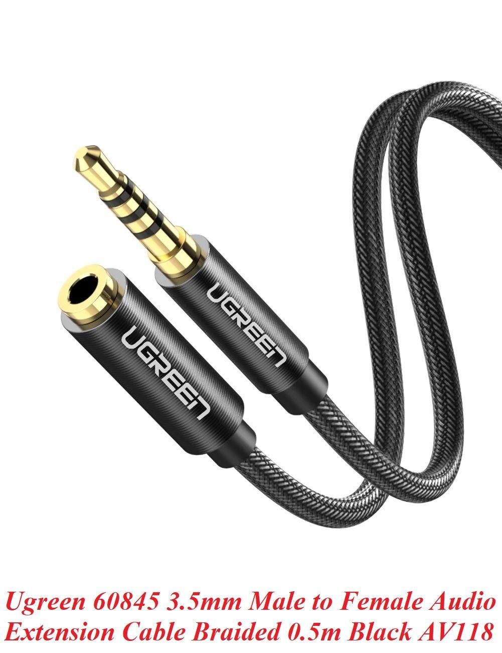 ✨Ugreen UG60845AV118TK 0.5M màu đen 3.5mm 3 ngấn nối dài Cáp âm thanh dây bện nylon 50cm hỗ trợ micro - HÀNG CHÍNH HÃNG