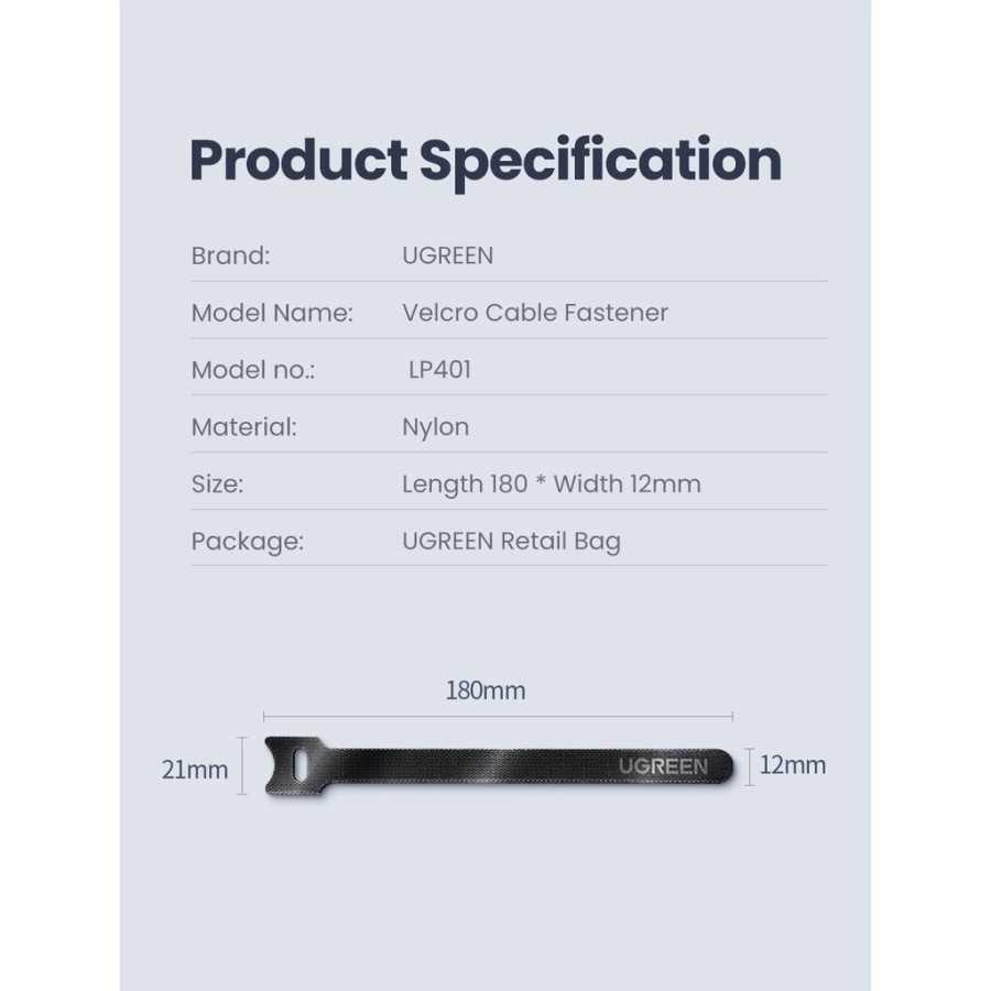 ✨Ugreen UG88946LP401TK 20 sợi 18cm màu đen Dây dán Velcro tiện dụng chất liệu plastic 1 túi có 20 chiếc 20245P20 - HÀNG CHÍNH HÃNG