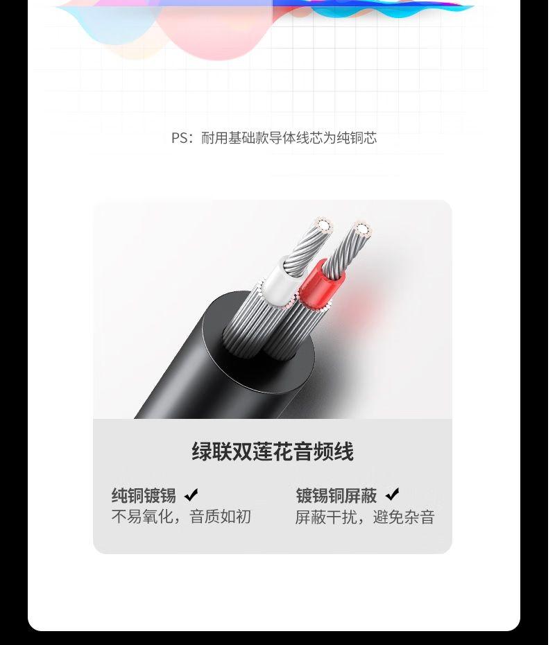 1. Connector A: 1 x 3.5mm Jack Male 2. Connector B: 2 x RCA Female, White (Audio left) Red (Audio right) 3. Cable Material: Nylon Braided 4. UGREEN 3.5mm(1/8" headphone plug) to 2 RCA(Right/Left) stereo
