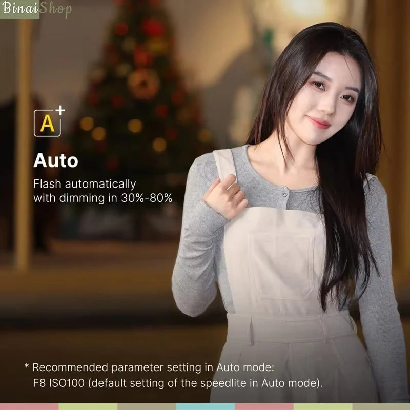 • Dải nhiệt màu CCT 5600K với thời lượng 1/250 giây, cường độ phát sáng GN12 mang lại ánh sáng mạnh và đều trong nhiều tình huống chụp khác nhau ở phạm vi 4m.