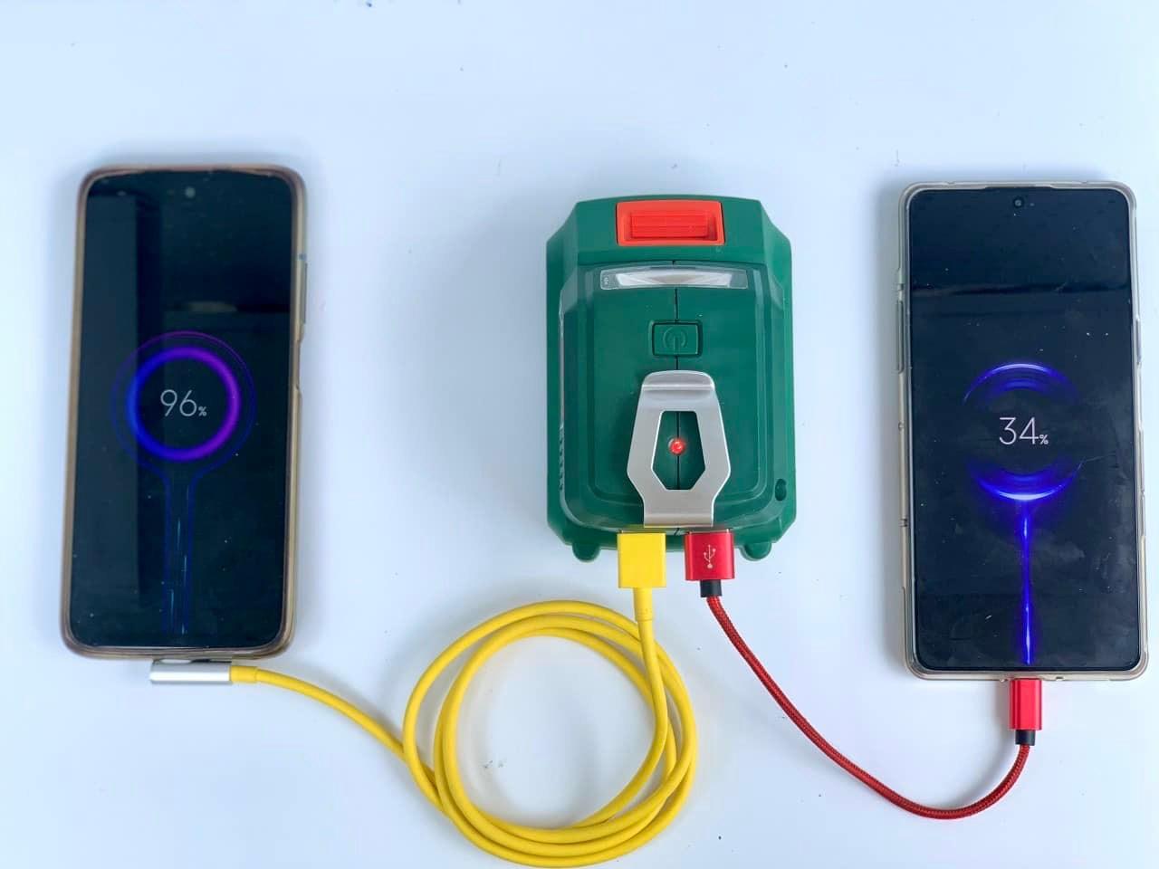 Đèn pha Led Hukan siêu sáng dùng pin, chân M21 phổ thông, tích hợp 2 cổng USB có thể sạc điện thoại