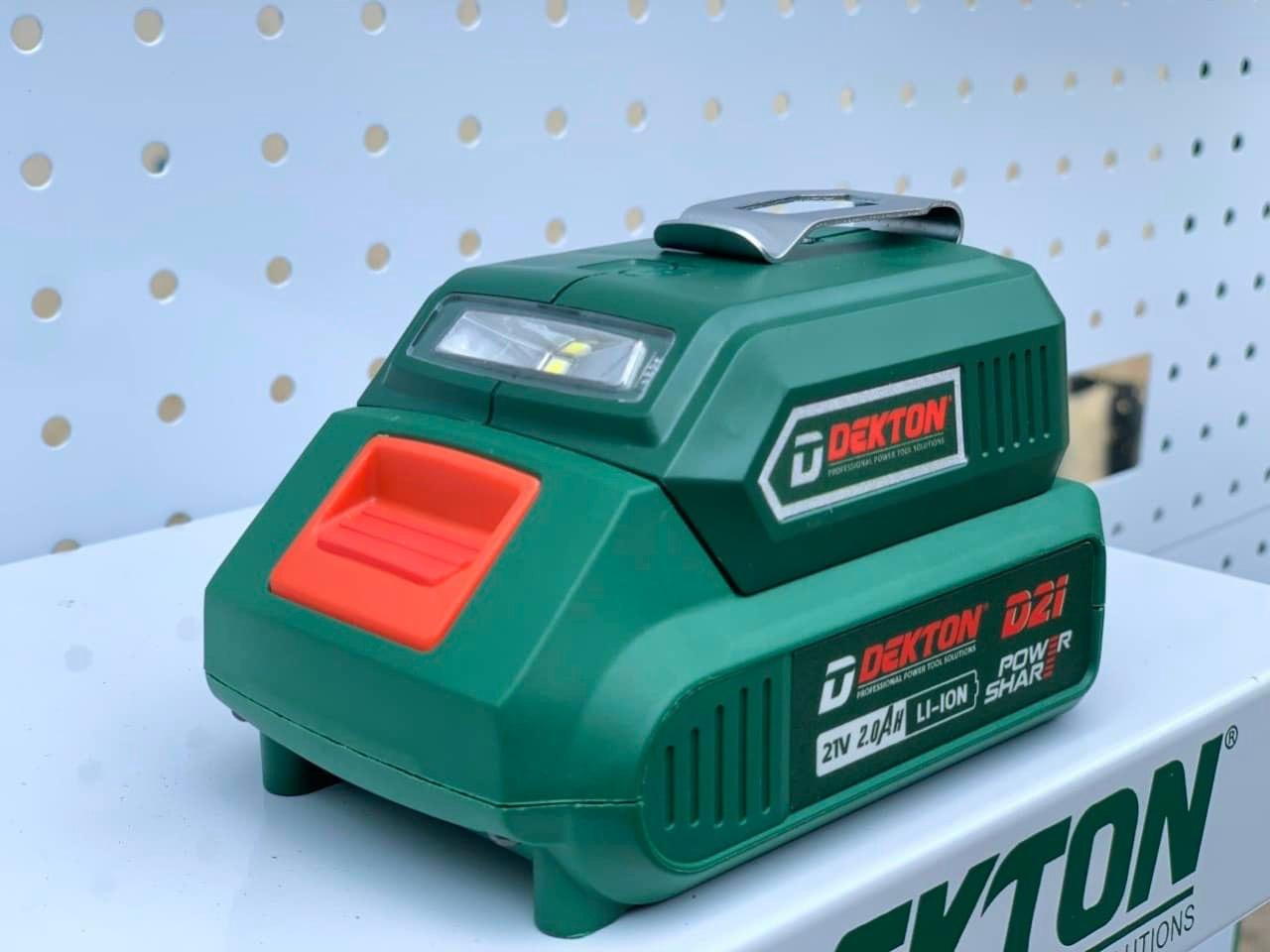DEKTON là một thương hiệu dụng cụ cầm tay nội địa trung quốc có uy tín được nhập khẩu phân phối chính hãng ở việt nam. Dòng sản phẩm của hãng luôn mang tới cho người dùng những trải nghiệm vượt trội, đảm bảo cuộc sống tiện nghi cho người dùng với nhiều sản phẩm chất lượng được sản xuất trên dây chuyền hiện đại bên cạnh đó giá thành phải chăng cũng như hậu mãi , bảo hành sản phẩm tốt giúp các sản phẩm của dekton chiếm đc ưu thế vs các hãng dụng cụ cầm tay khác Là một thương hiệu mới , tuy nhiên với việc không ngừng lắng nghe các phản hồi của người dùng cộng với công nghệ phát triển nên các sẩn phẩm của dekton ngày càng đa dạng về mẫu mã cũng như chất lượng tăng lên từ đó các sản phẩm của hãng được người dùng trong nước cũng như quốc tế đón nhận và tin dùng Thông số kỹ thuật -Model:D21-USB -Hãng: Dekton -Sản Xuất: Trung Quốc -Sử dụng thích hợp với pin D21 Dekton -Có 2 cổng ra tích hợp sạc USB 2.0A -Tích hợp đèn pin siêu sáng -Bảo hành 6 tháng