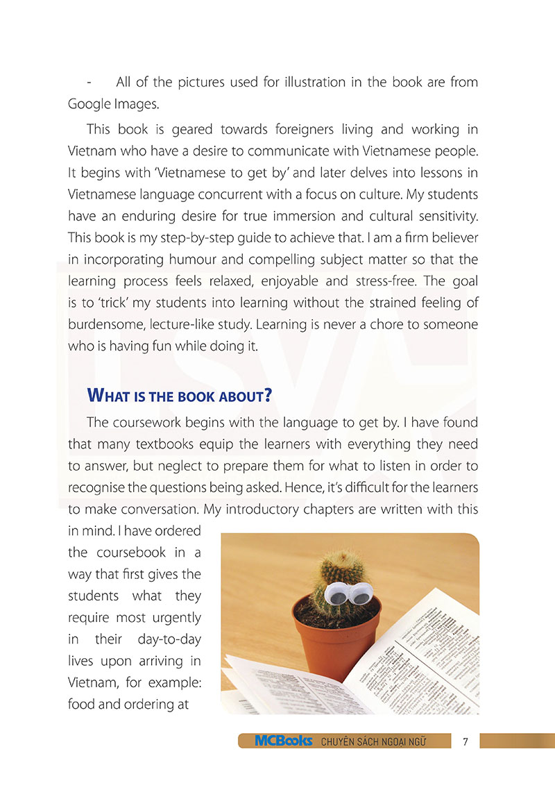 Ngay cả khi bạn đã nắm chắc toàn bộ những kiến thức ngữ pháp tiếng Việt, nhưng bạn còn băn khoăn rằng làm cách nào để có thể giao tiếp một cách trôi chảy nhất có thể vì có biết bao tình huống bạn phải đối mặt hàng ngày. Nếu bạn đã hoàn thành xong hai cấp độ trước của bộ sách này thì cuốn sách Useful Vietnamese for Expats 3 sẽ giúp bạn tiếp cận một cách gần nhất những vấn đề để dễ dàng gợi mở cuộc trò chuyện.