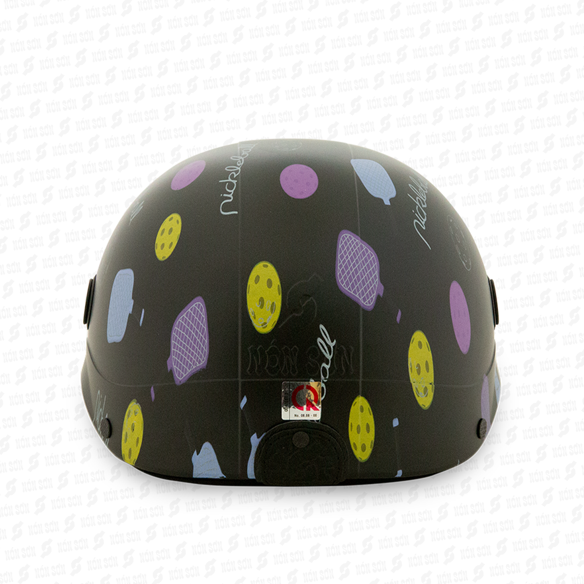 • Phần logo NÓN SƠN được gắn trên vỏ nón bảo hiểm Nón Sơn được làm từ da thật.