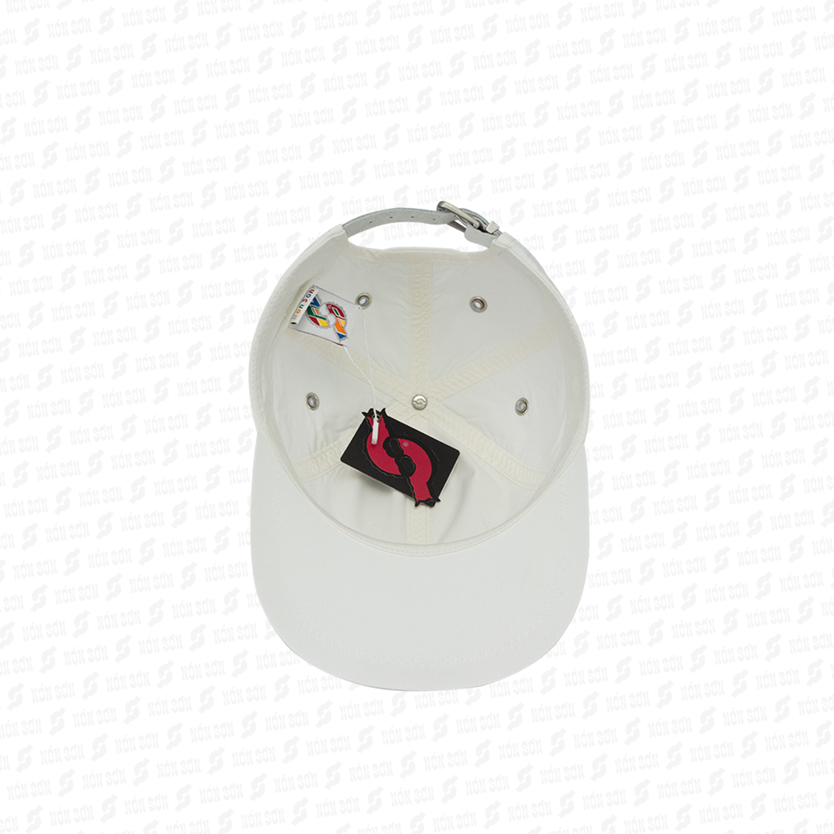• Sử dụng kẹp phơi vào đai bên trong nón (vị trí giữa lưỡi trai), sao cho lưỡi nón hướng phía trên và dây đuôi hướng phía dưới.