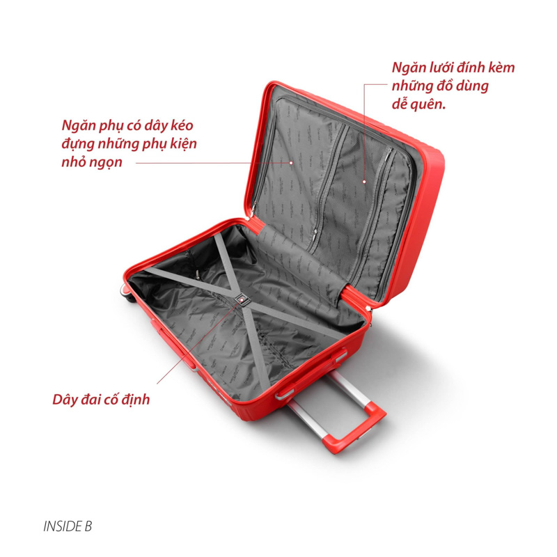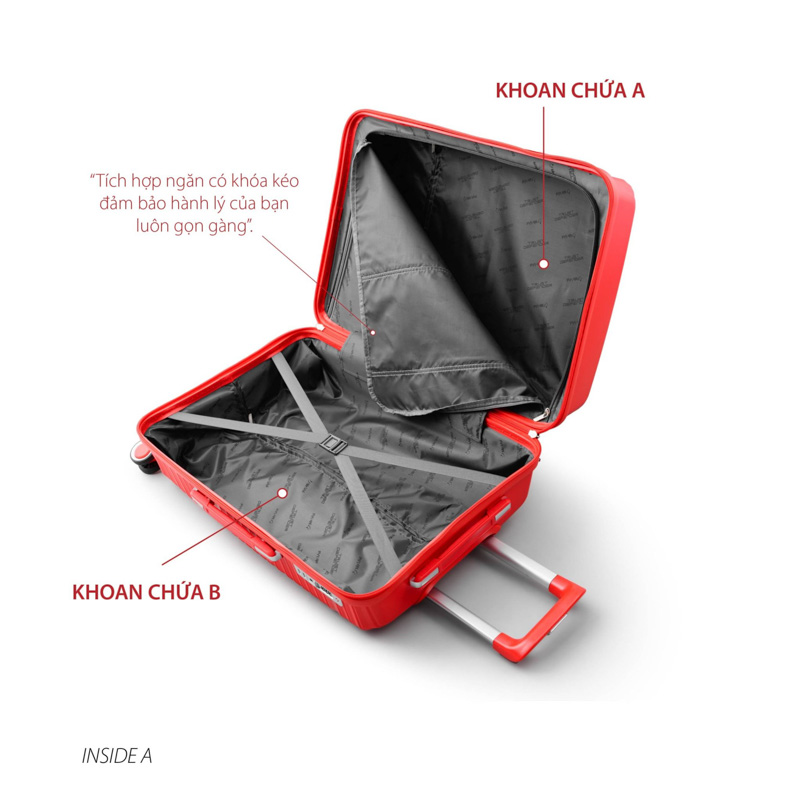 Ngăn chứa khoa học Ngăn chứa được thiết kế rộng rãi, ngăn được chia khoa học với 1 lớp màng vải giúp bạn có thể phân chia đồ bẩn, các vật dụng cá nhân,... Ngoài ra, ngăn còn lại được may tỉ mỉ thêm dây đai cố định giúp cố định quần áo, hàng lí được gọn gàng, ngăn nắp. Ở ngăn nới rộng, giúp bạn có thể linh hoạt chứa đồ nhiều hay ít, phù hợp với từng thời điểm và các chuyến đi ngắn ngày, dài ngày khác nhau.