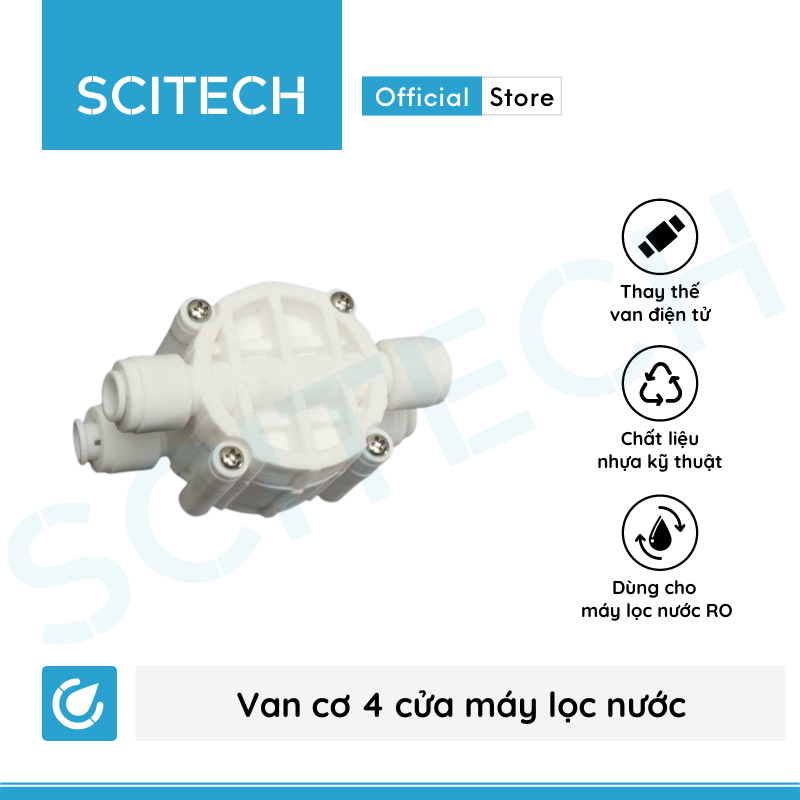Van cơ 4 cửa máy lọc nước là thiết bị dùng để kiểm soát dòng chảy của nước trong hệ thống máy lọc nước. Van cơ 4 cửa máy lọc nước RO được thay thế cho van điện từ trong trong một số dòng máy lọc nước RO tiêu chuẩn và dòng máy lọc nước RO không dùng điện. Van cơ 4 cửa có ưu điểm vượt trội là siêu bền, ít bị hỏng và không bị cháy khi máy hoạt động quá lâu.