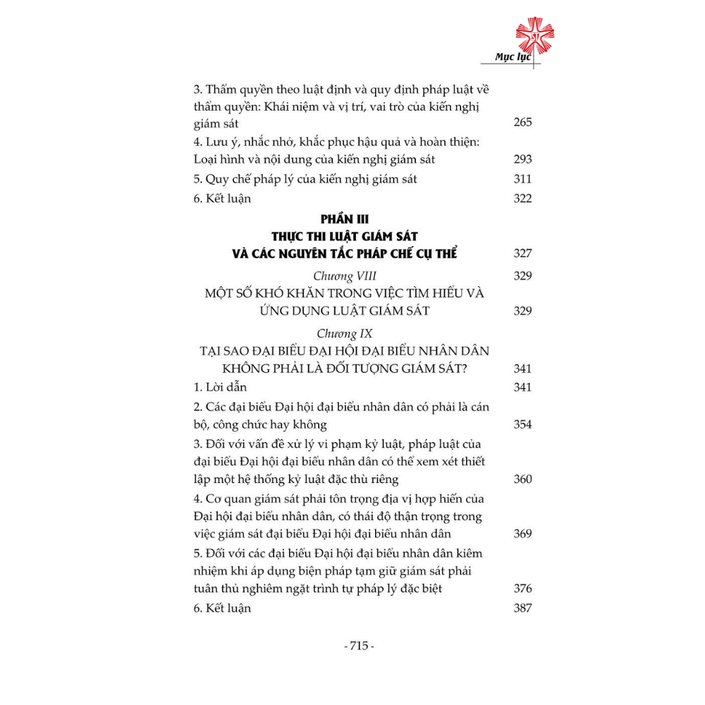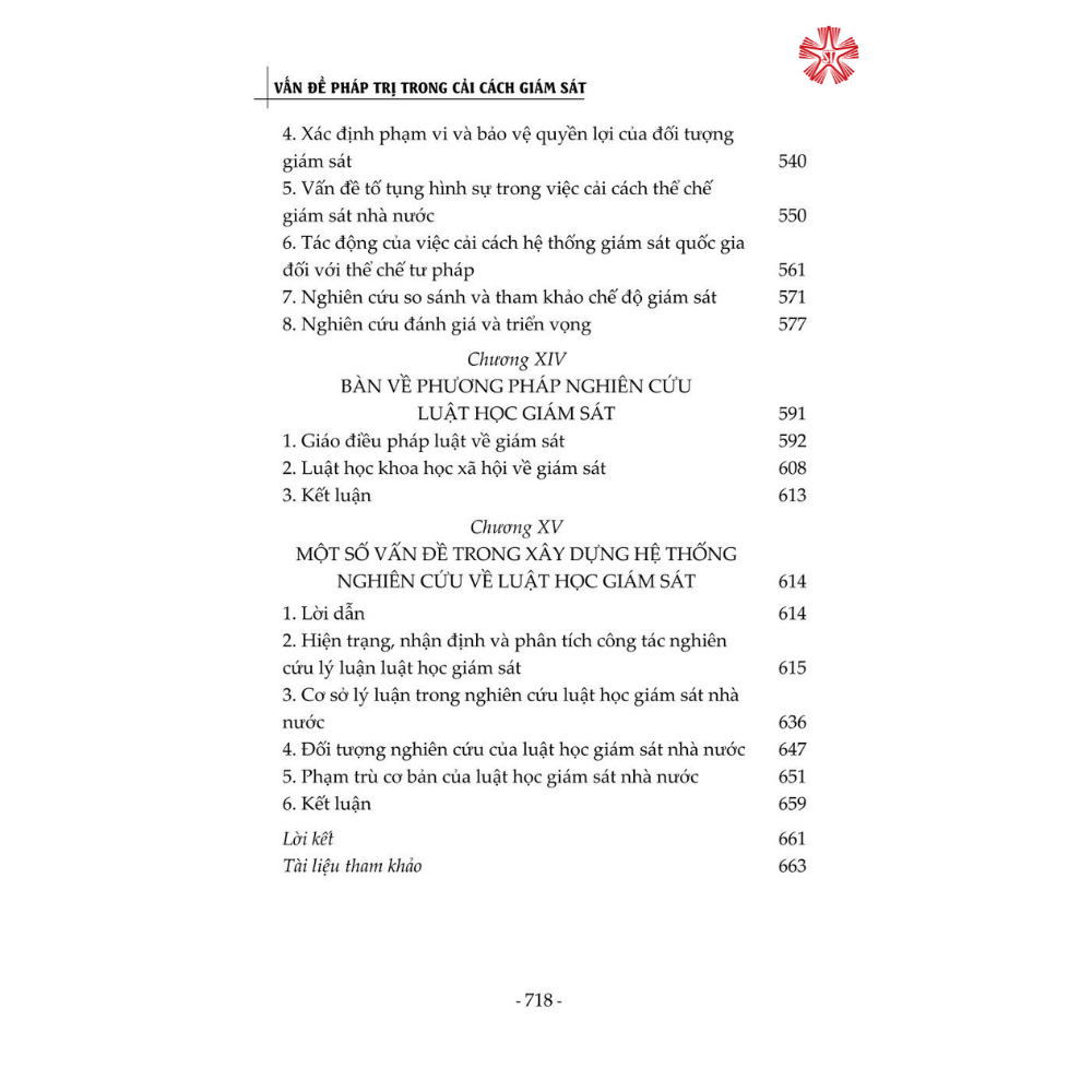 Cuốn sách được kết cấu gồm 5 phần, trình bày một cách toàn diện chế độ giám sát cũng như vấn đề xây dựng pháp luật Trung Quốc về giám sát từ hai góc độ lý luận và thực tiễn, đưa ra các giải pháp nhằm góp phần hoàn thiện thể chế giám sát của Trung Quốc. Đây là cuốn sách chuyên khảo có bố cục lôgích hoàn chỉnh và bối cảnh rõ ràng về cải cách thể chế giám sát của Trung Quốc, là tài liệu tham khảo bổ ích đối với các nhà nghiên cứu chuyên ngành luật cũng như đông đảo bạn đọc quan tâm đến chủ đề này.