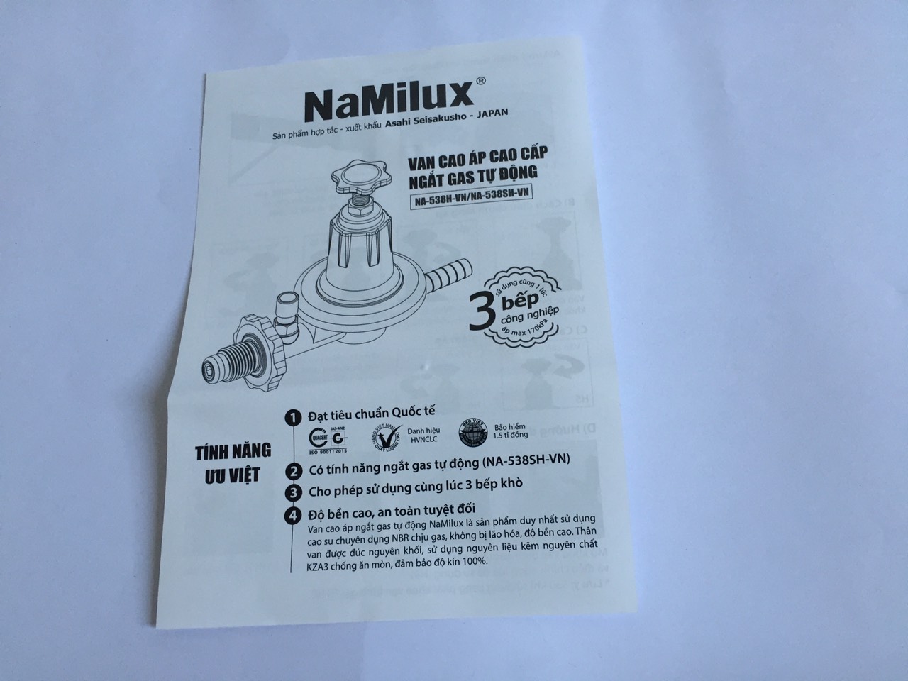 - Van gas cao áp tự động Namilux NA-537SH/547SH đảm bảo an toàn tuyệt đối cho người dùng nhờ đặc tính ngắt gas tự động khi có dấu hiệu rò rỉ. - Hệ thống cảm ứng