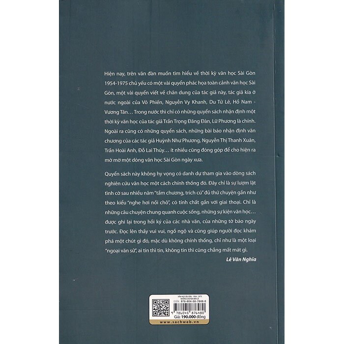 Cuốn sách mới nhất của Lê Văn Nghĩa không phải một tập chuyên khảo về văn học miền Nam được biên soạn một cách hệ thống như một cuốn văn học sử cận - hiện đại.