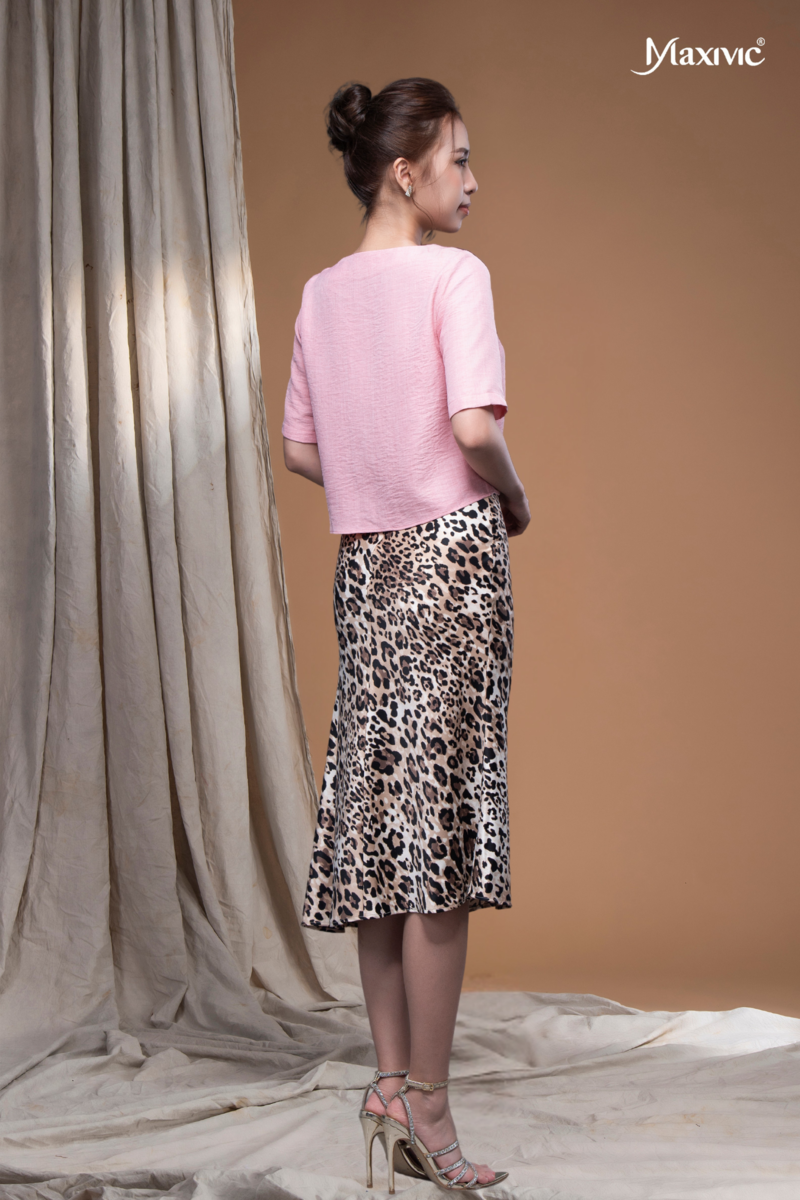 - Chân váy dáng dài chữ A hoạ tiết da beo, giúp tôn dáng lại che khuyết điểm tốt, mang lại vẻ đẹp nữ tính và trẻ trung cho người mặc.