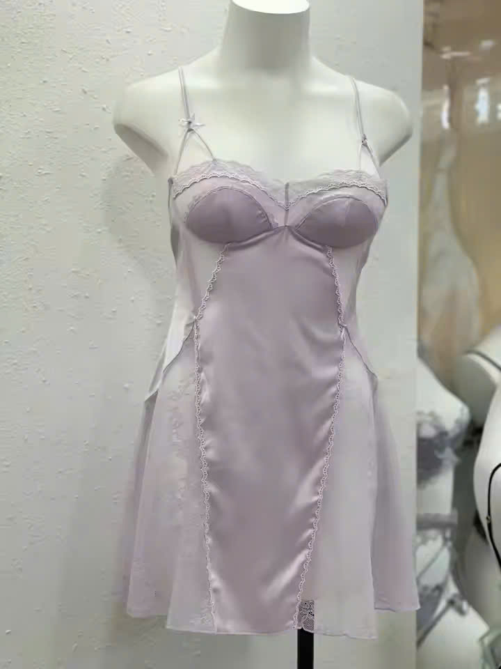 Thương hiệu: Sanny House Tên sản phẩm: Váy ngủ Chất liệu: lụa cao cấp mềm mịn, co giãn, thấm hút tốt Kiểu dáng: gợi cảm, trẻ trung, hiện đại Màu: tím Size: dưới 56kg