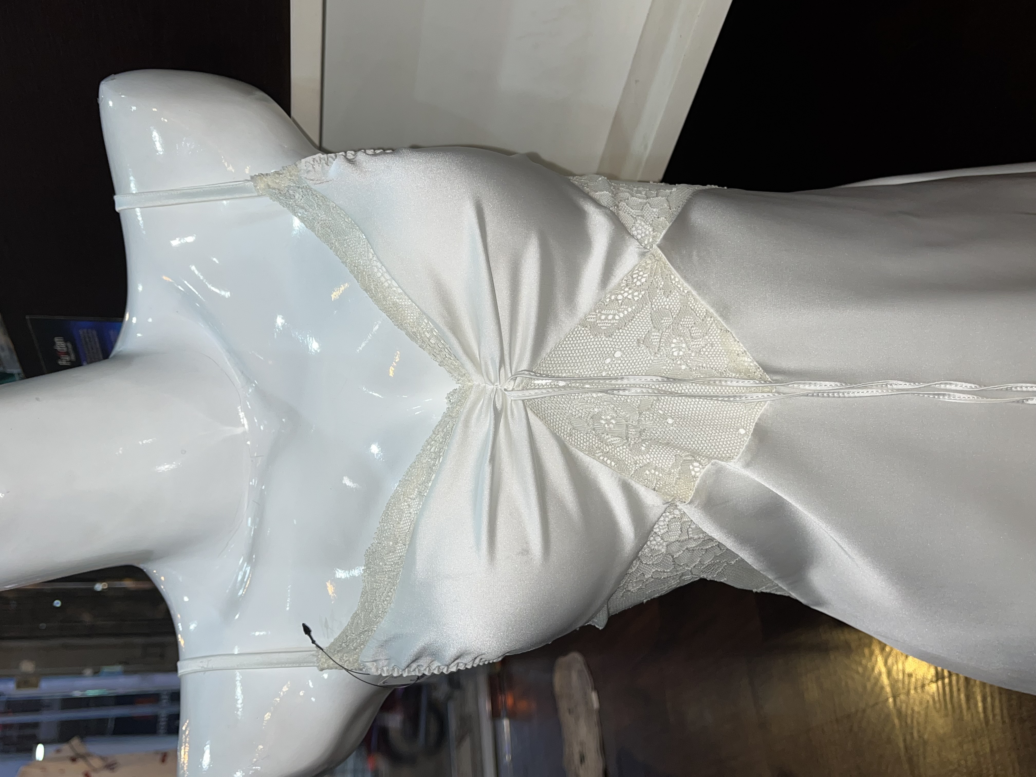 Thương hiệu: Sanny House Tên sản phẩm: Váy ngủ Chất liệu: lụa cao cấp mềm mịn, co giãn, thấm hút tốt Kiểu dáng: gợi cảm, trẻ trung, hiện đại Màu: trắng Size: dưới 56kg