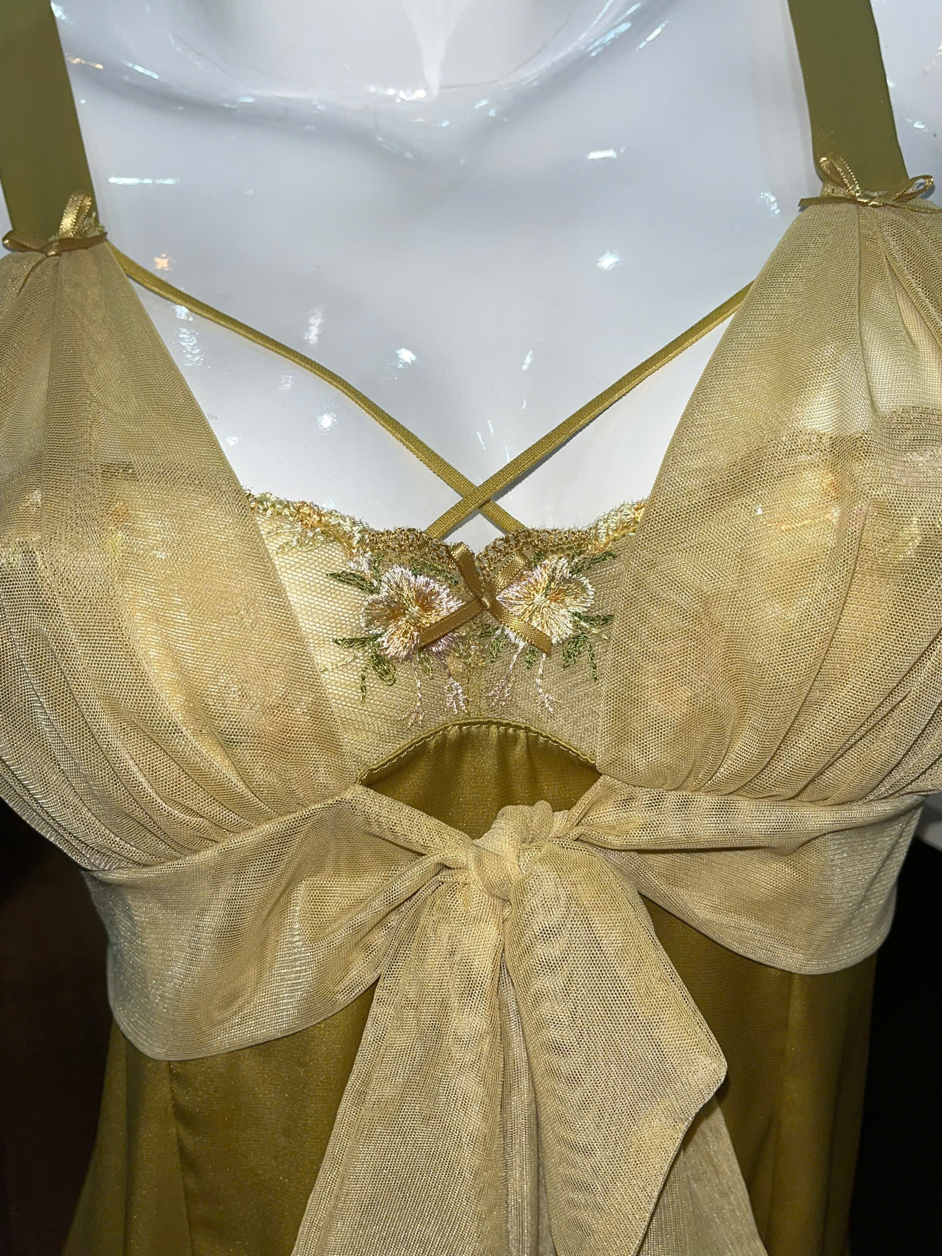 Mua tại TiktokThương hiệu: Sanny House Tên sản phẩm: Váy ngủ Chất liệu: lụa cao cấp mềm mịn, co giãn, thấm hút tốt Kiểu dáng: gợi cảm, trẻ trung, hiện đại Màu: vàng Size: dưới 56kg LƯU Ý: