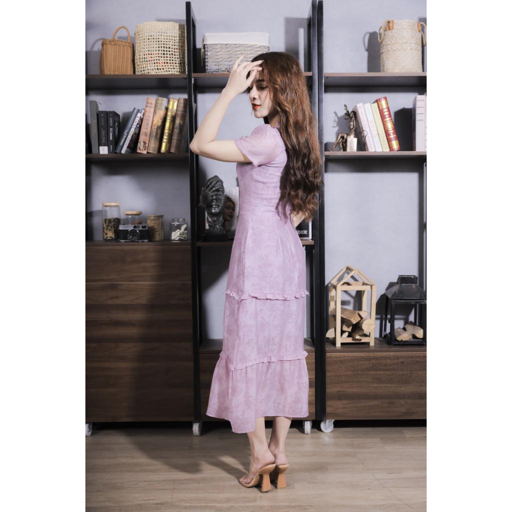 ✨Váy Nữ Cao Cấp Màu Tím Xếp Ly 23V027 Pi Style