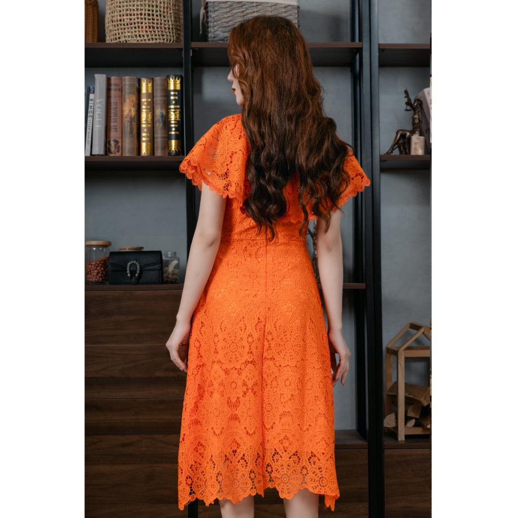 ✨Váy Ren Bèo Cổ Màu Cam 23V005 Cao Cấp Pi Style