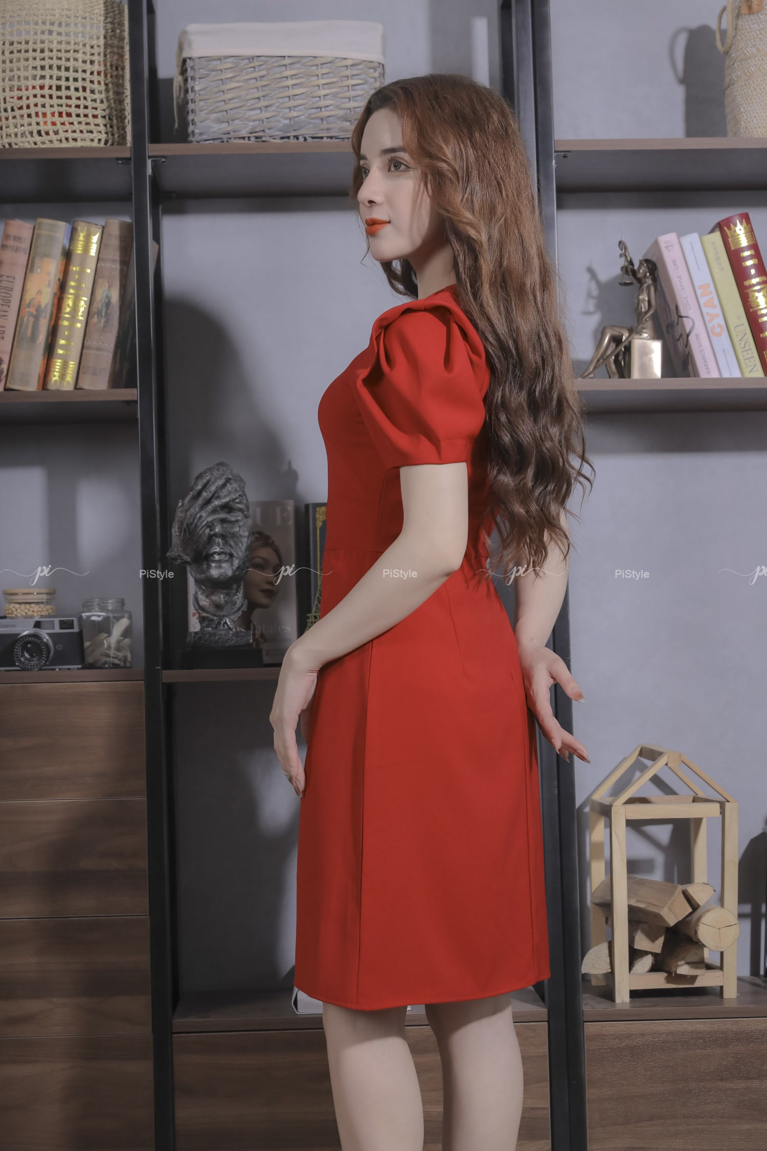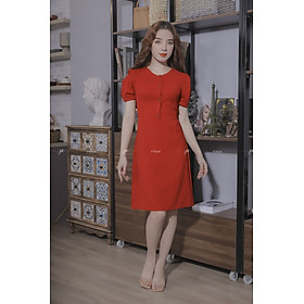 Váy Vải Trơn Cúc Trước Màu Đỏ Pi Home Of Beauty Made With Love 23V059