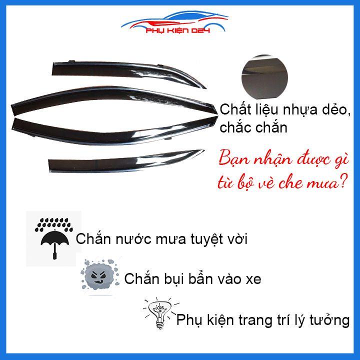 Đặc điểm: Chất liệu Bộ vè che mua chỉ INOX nhựa ABS cao cấp, Đường viền trên có chỉ innox sáng bóng, Tác dụng: Bảo vệ, trang trí viền trên kính xe, tráng nước mưa