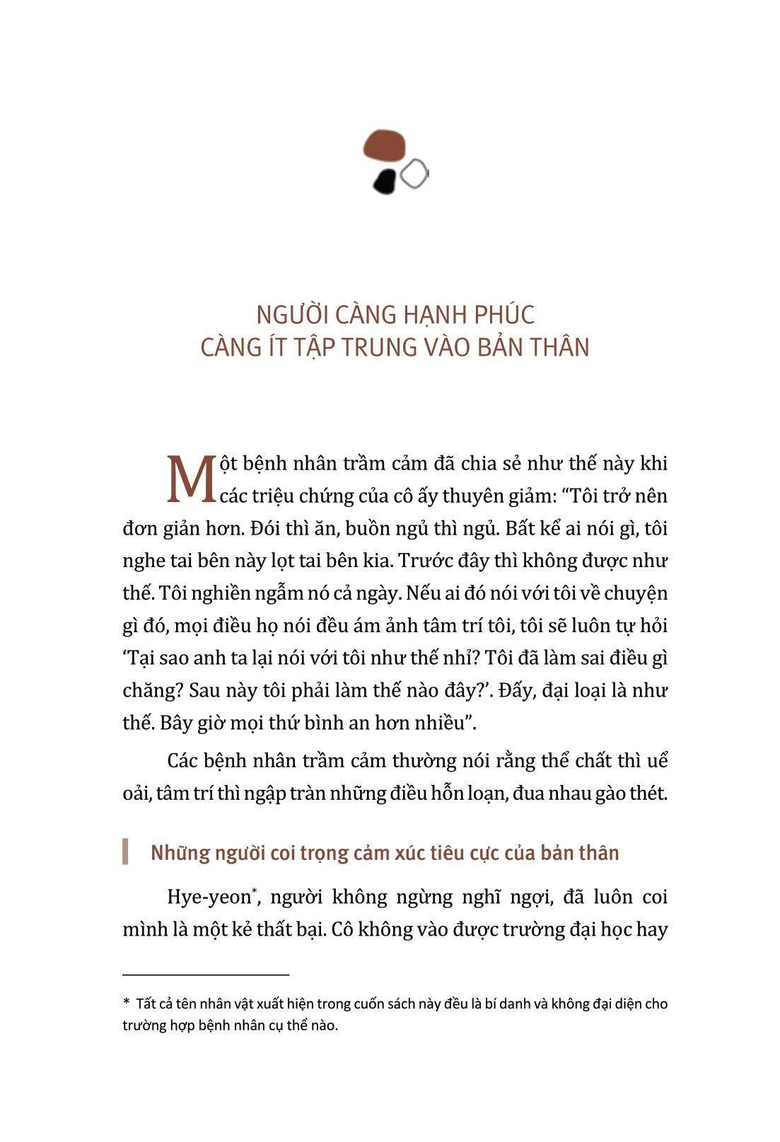 Chương 3 sẽ hướng dẫn bạn cách đối phó với những cảm xúc làm bạn khổ sở, chẳng hạn như tự trách, hối tiếc, mong muốn được công nhận quá mức, u sầu hoặc bất an.