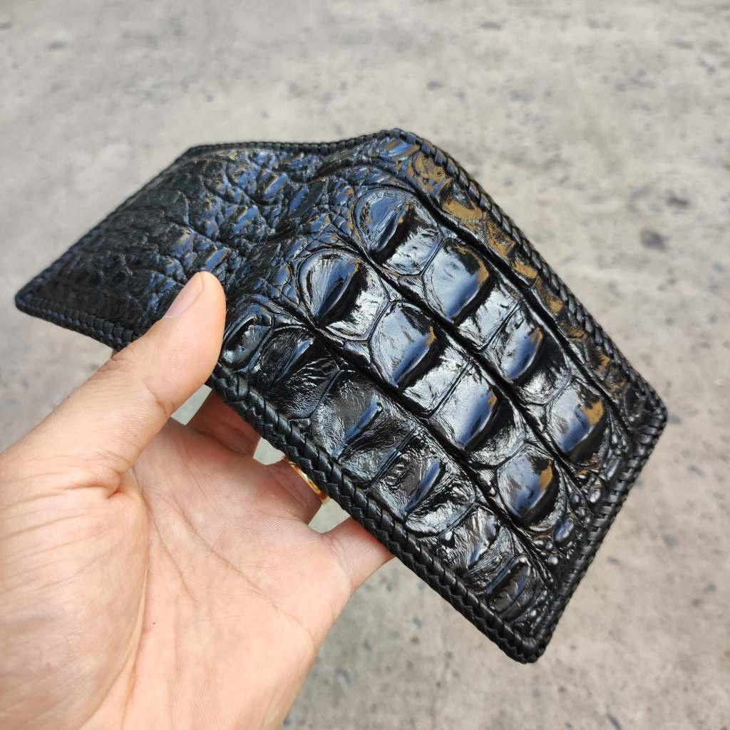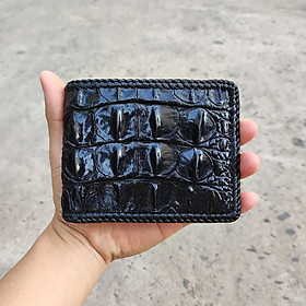 Mặt ngoài của ví làm từ phần gai lưng cá sấu chạy song song rất đẹp. Xung quanh ví được đan viền thủ công đẹp nổi bật và chắc chắn