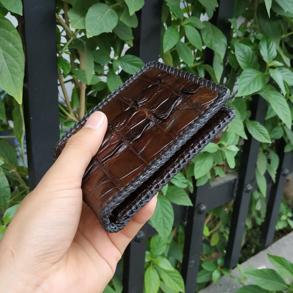 Ví Da Cá Sấu Thái Lan 2 Mặt Đan Viền Thủ Công #vidacasau #vida #bopdacasau