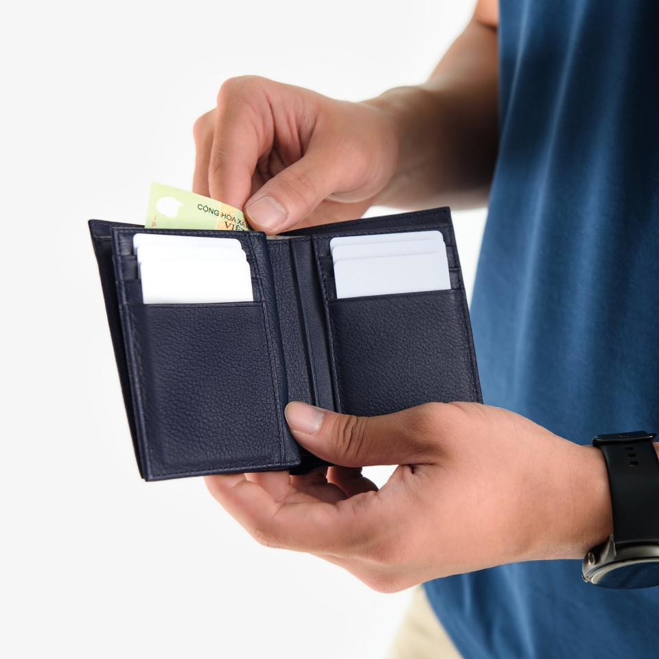 ✨Ví Nam Bỏ Túi Da Thật GENCE C17 Chất Liệu Da Bò Cao Cấp Màu Xanh Navy Dáng Dọc
