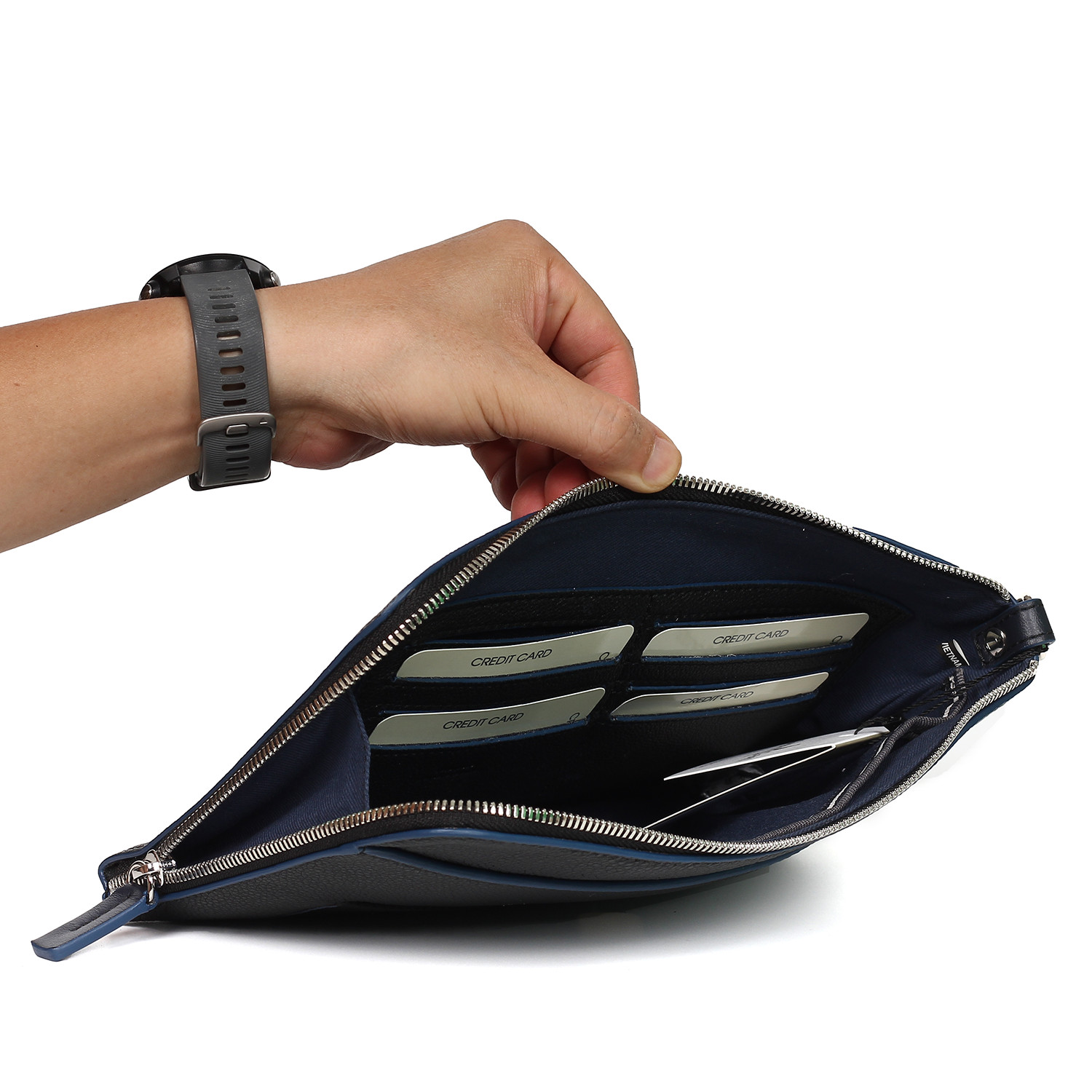 VÍ NAM CẦM TAY KHÓA KÉO-LRB-220013-A-NAV Thiết kế ví cầm tay sang trọng, lịch lãm từ thương hiệu Valentino Creations. Chất liệu: da bò cao cấp Kích thước: 19 x 30 x 3 cm