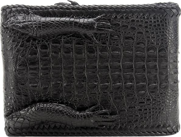 Bóp/Ví da cá sấu Huy Hoàng đan viền da bụng màu đen, nâu đất, nâu đỏ, vàng bò 2254-2711-2712-2713