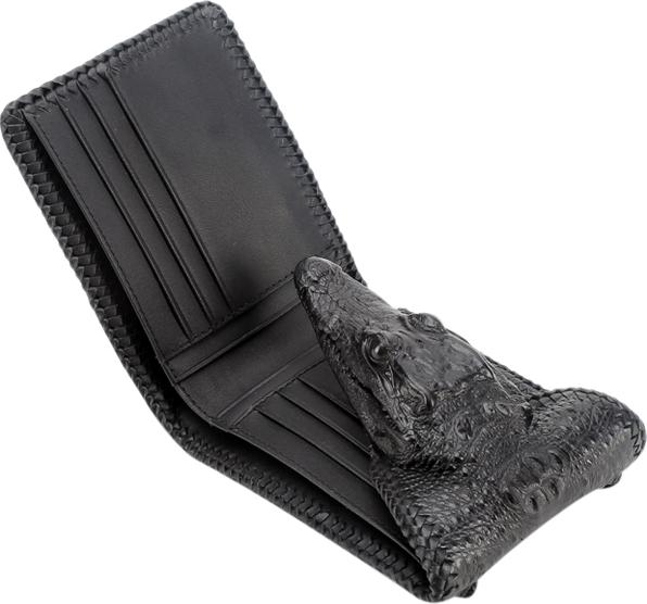 Ví/Bóp nam Huy Hoàng da bò vân cá sấu màu đen 2111