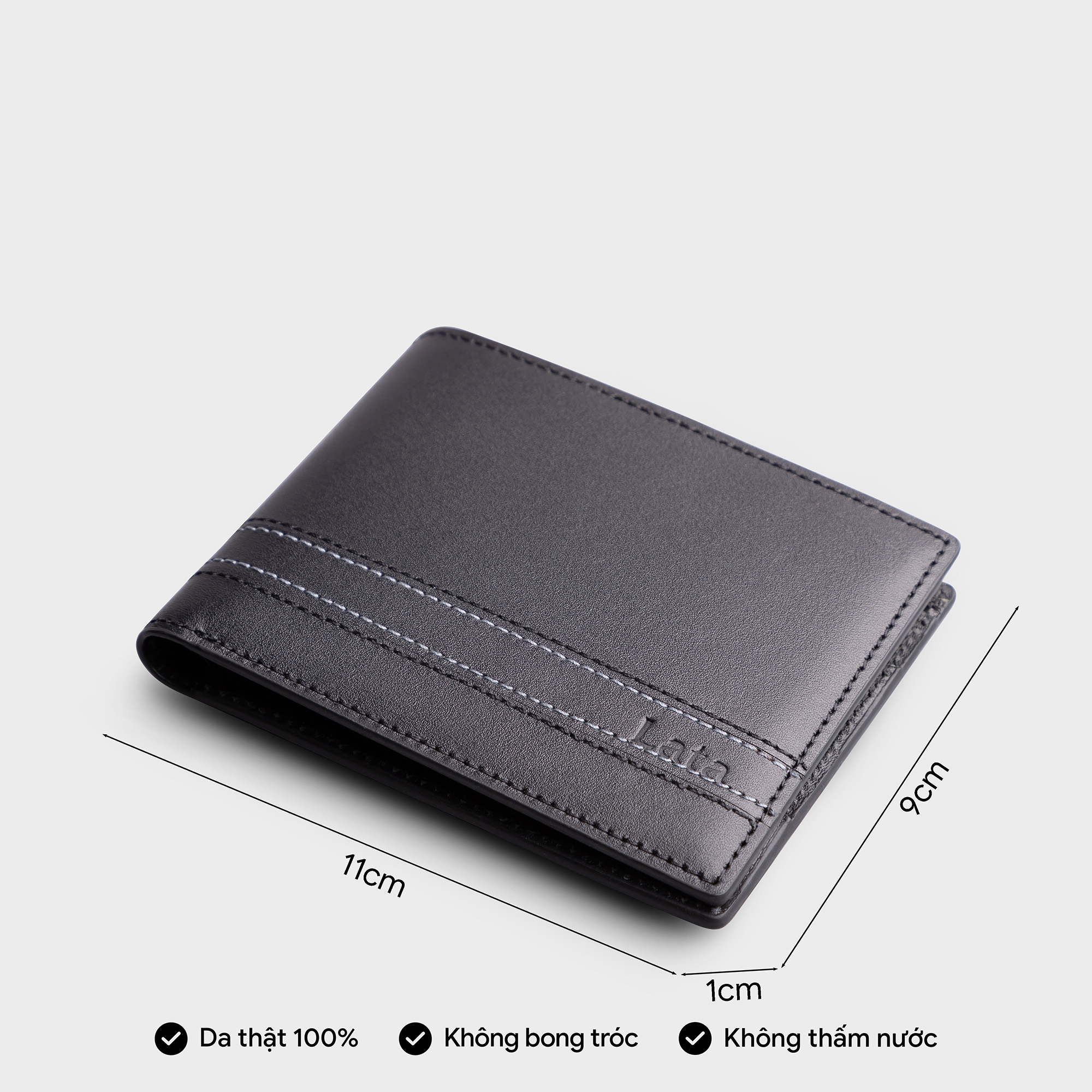 Ví da nam dáng ngang Lata LVN121 được thiết kế tối giản, dáng ví truyền thống nhưng được phối thêm 1 ngăn phụ ở mặt sau của ví có thể bỏ thẻ card. Chất liệu