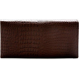 Ví/Bóp nữ da bò vân cá sấu Huy Hoàng 2 gấp màu nâu 3117