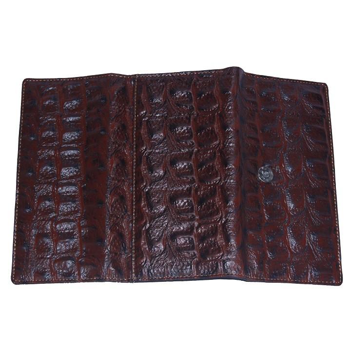 Ví/Bóp nữ da bò Huy Hoàng vân cá sấu lớn 3 gấp màu nâu đỏ 3169