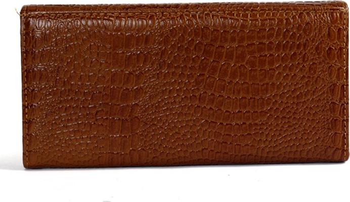 Ví/Bóp nữ Huy Hoàng da bò vân cá sấu 3 gấp màu nâu 3107