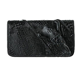 - Tên sản phẩm: Ví nữ da cá sấu Huy Hoàng nhiều ngăn đầu cá sấu đan viền màu đen HP3730