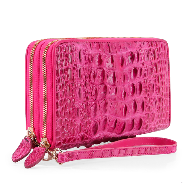 Ví cầm tay da cá sấu 2 khóa ngoài trong nhiều ngăn cho nam và nữ