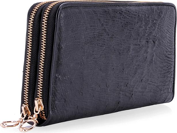 Bóp/Ví da đà điểu Huy Hoàng da bụng màu đen, nâu đất, nâu đỏ, vàng bò 2405-06-07-19