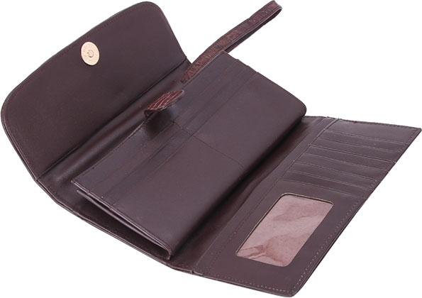 Ví/Bóp nữ da bò vân cá sấu Huy Hoàng 2 gấp màu nâu 3117
