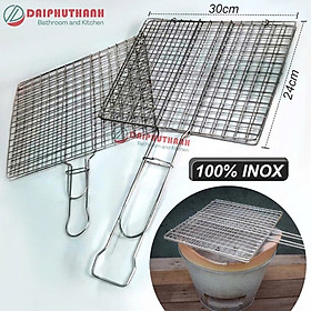 ✨Vỉ Nướng Than Inox Vỉ Nướng Thịt Cá Dạng Kẹp - Độ dày 2 đến 3 li, mặt vỉ 30x24cm đan ca rô dày dặn