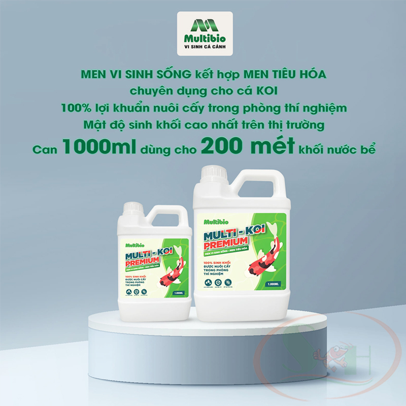 Vi sinh nước MultiBio Multi Koi Premium là chế phẩm sinh học chứa 100% lợi khuẩn, với mật độ sinh khối rất cao (đậm đặc) giúp phân hủy độc tố, cải thiện chất lượng nước trong các bể thể tích lớn, ao hồ ngoài trờ