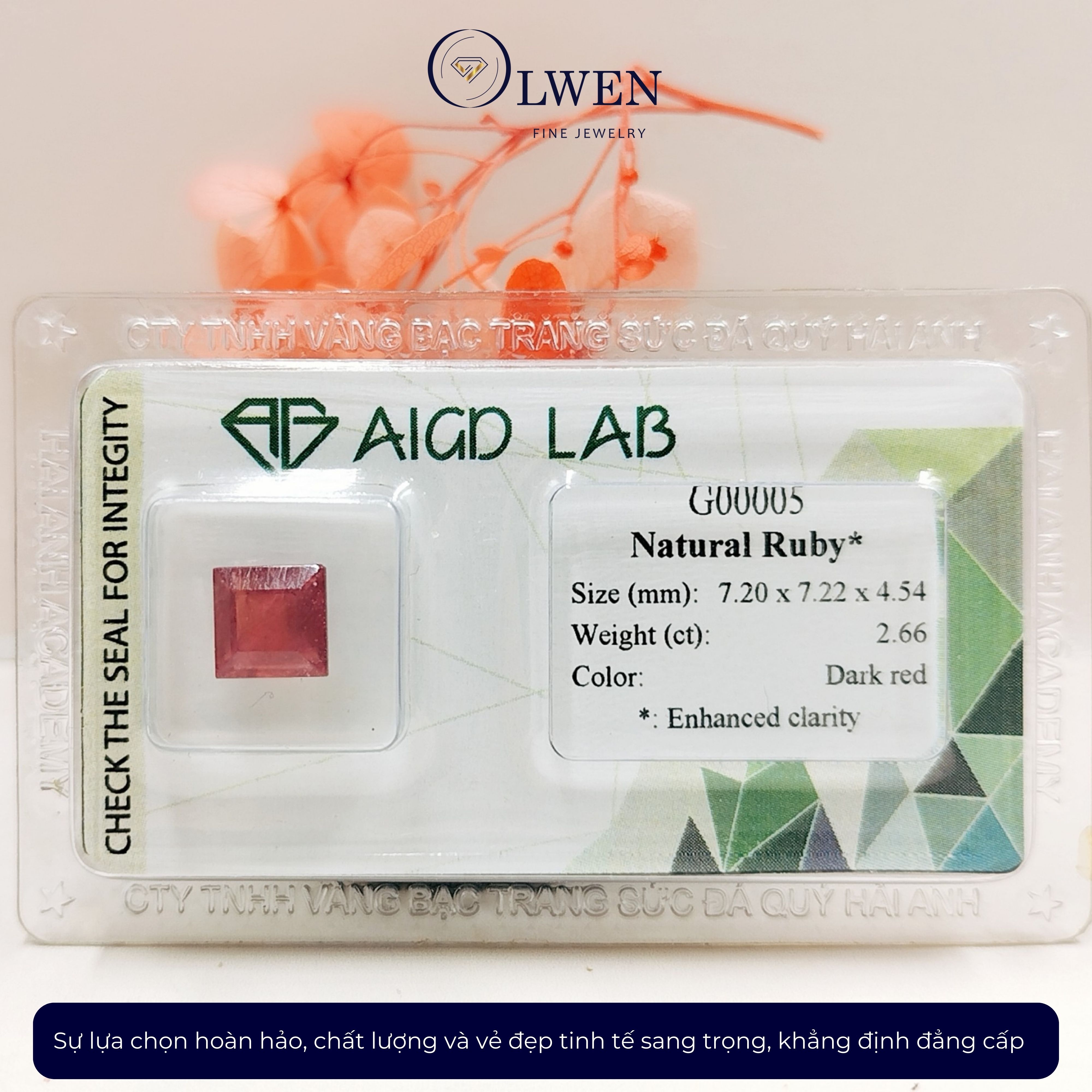 VIÊN ĐÁ RUBY THIÊN NHIÊN_HA-RB00048 - G00005 Tên sản phẩm: Viên đá Ruby thiên nhiên _HA-RB00048 - G00005, đá phong thủy. Kích thước: 7.27 x 7.26 x 4.54 mm Trọng lượng: 2.66 cts Màu sắc:
