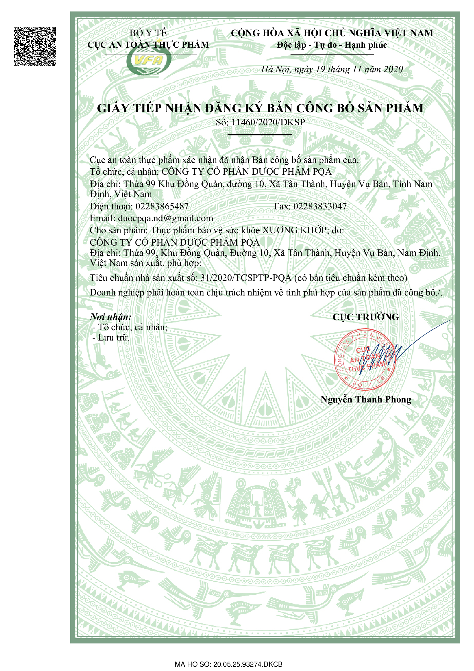 THÔNG TIN PQA VIÊN NANG VAI GÁY PQA Viên nang Vai Gáy là dược phẩm thảo dược hỗ trợ mạnh gân cốt, giúp giảm triệu chứng đau mỏi xương khớp cho người bị đau nhức mỏi xương